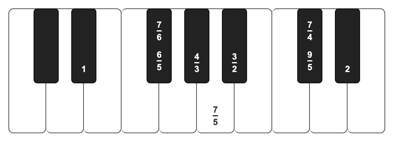 Tuning a piano to the midpoint of these value is an example of what’s called ‘well tuning’ where all the keys sound good. There are many different types of well tuning. This is the easiest one to tune a real piano if you don’t have special equipment and is also the most just flavored. The standard equal temperament tuning is the most smoothed over.